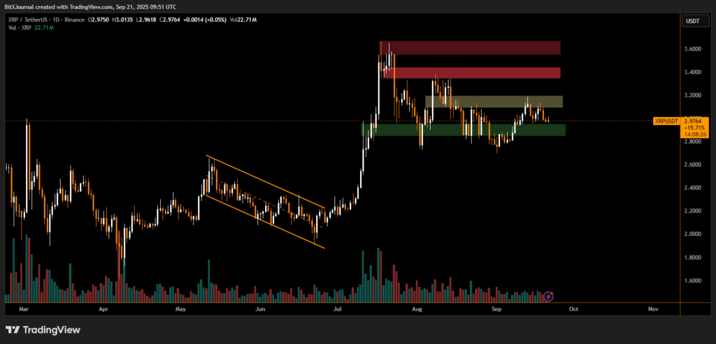 Market experts emphasize that XRP’s ability to hold above $2.80 will be crucial for its mid-term trajectory. If buyers manage to defend this area, the token could attempt another push toward the $3.15 resistance, with potential to re-test the upper $3.40–$3.70 range if momentum builds.